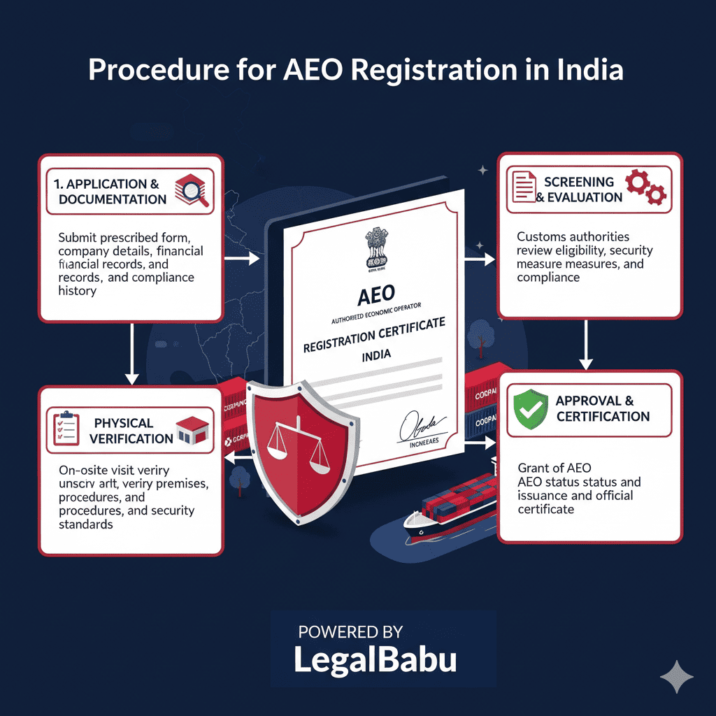 The Authorised Economic Operator (AEO) registration process is structured, transparent, and largely digitized to promote ease of doing business. Below is a step-by-step procedure to apply for AEO certification in India: